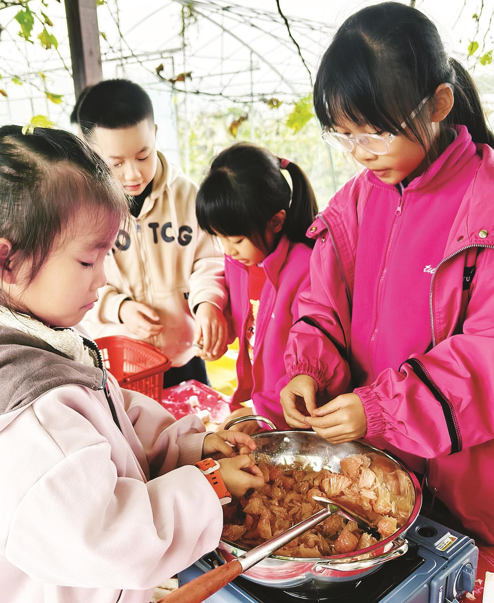 孩子们制作蜂蜜柚子茶。刘新桐 摄