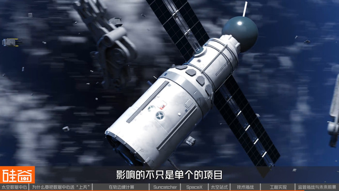 其次是碰撞风险与太空垃圾。高功耗算力卫星一旦失效,如果不能及时、可控地离轨,便可能成为长期存在的碎片源,而碎片一旦产生,会在轨道上以极高速度传播风险——这影响的不仅只是单个项目,更是整个轨道环境的长期安全。