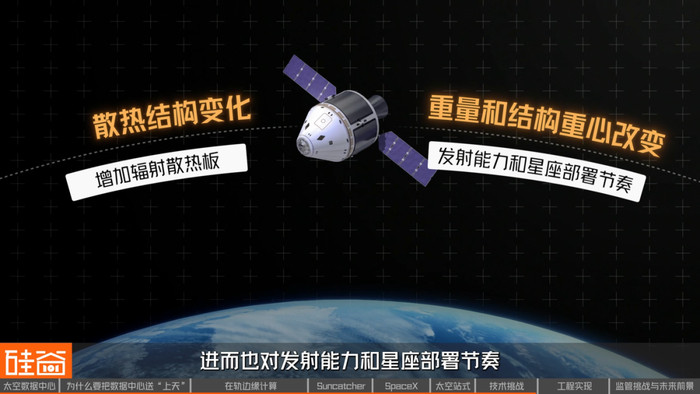 随之而来的,是散热结构的变化。通信载荷产生的热量有限,但算力载荷会持续发热,这意味着卫星外部,必须增加专门的辐射散热板,把热量稳定地送向深空。